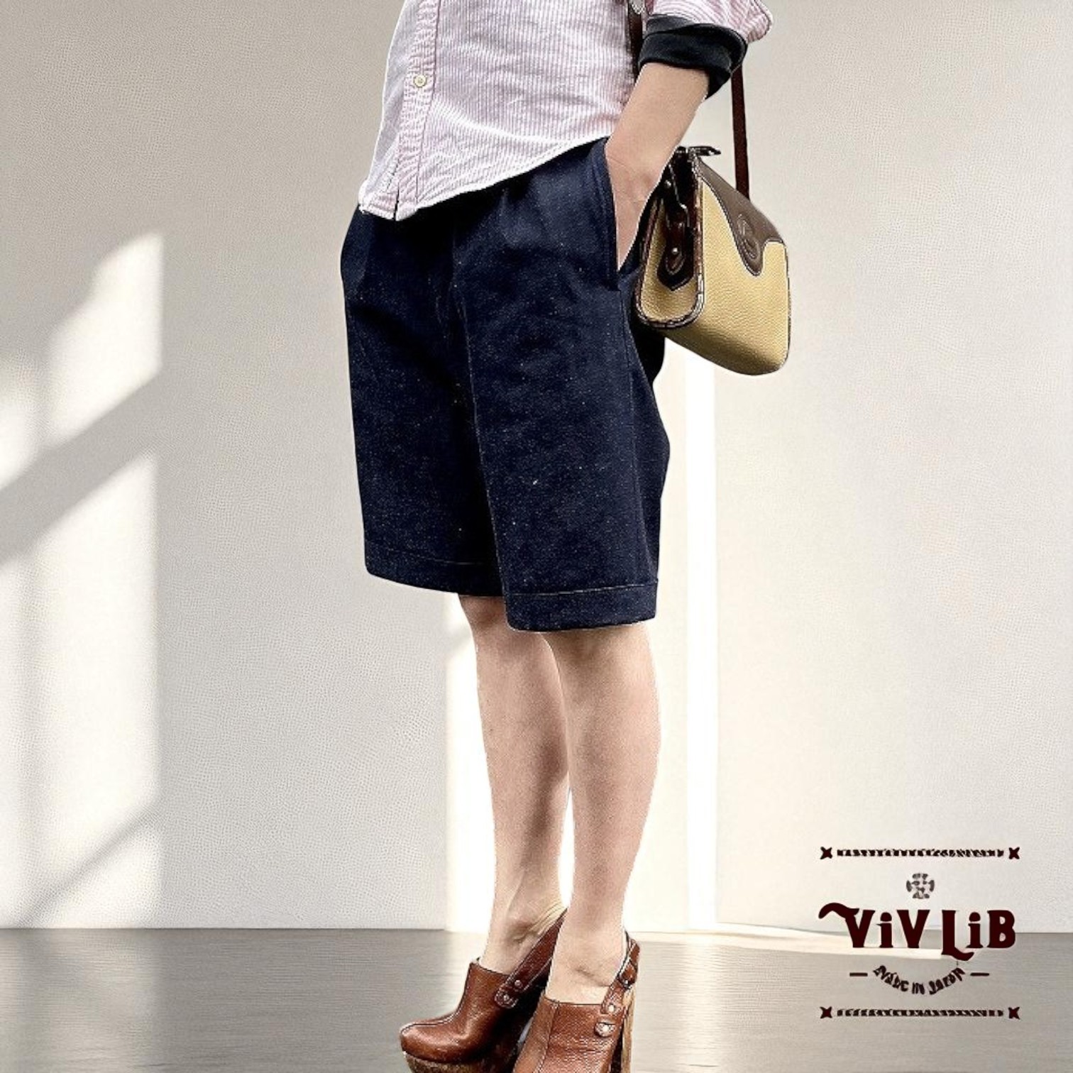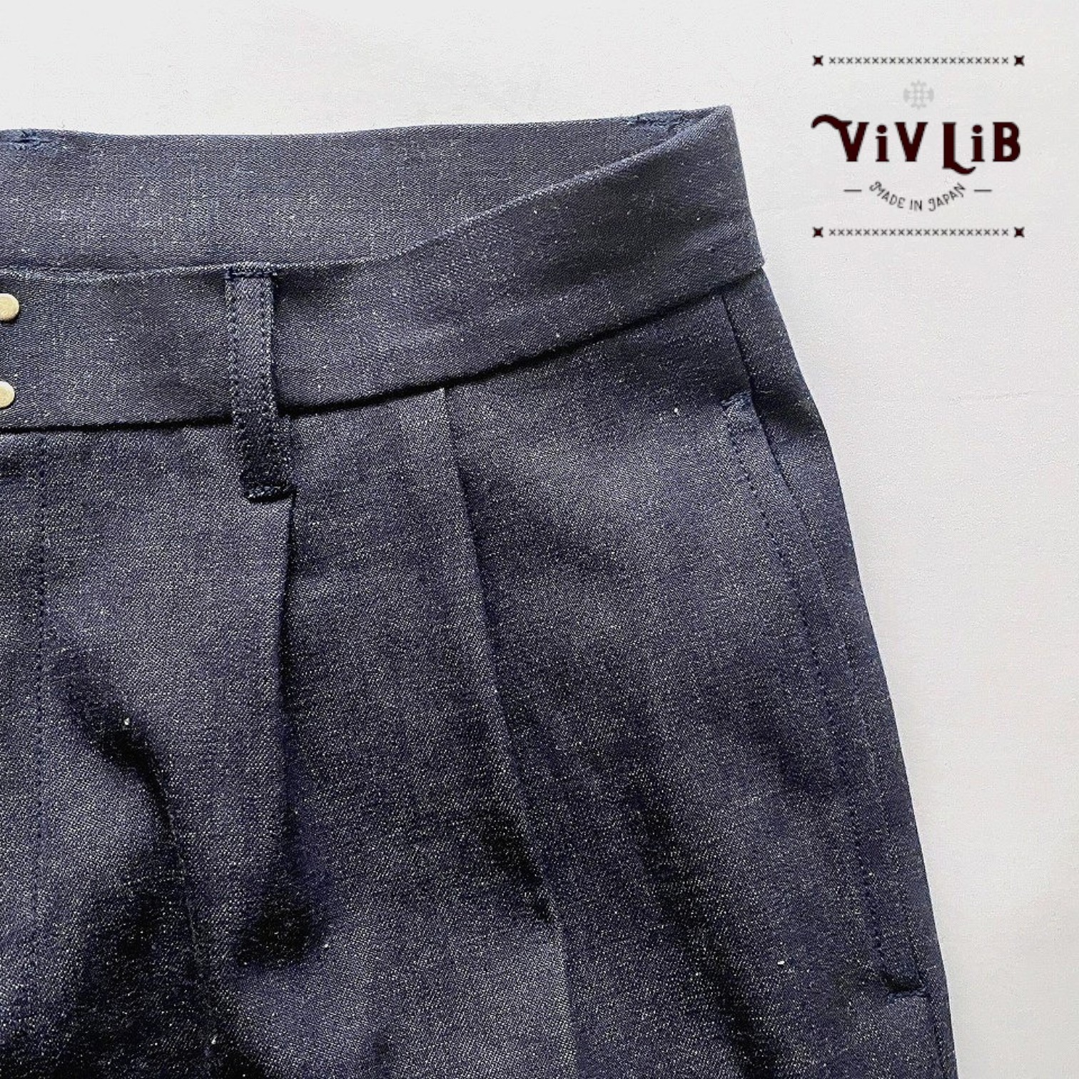 ViV LiBでは、岡山県井原市の老舗デニム生地メーカーが誇るこだわりのセルビッジデニムを使用し、上質でありながらシンプルで長く愛されるものづくりを大切にしています。岡山のデニム縫製工場で培った技術を活かし、生地工場にも直接足を運び、厳選したデニム生地をを選んでいます。妥協のない縫製で、心を込めて仕立て上げたデニムアイテムを日々制作しております。