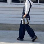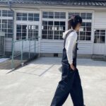 ルーズなシルエットを活かし、ウエストは大きめに、裾は長めにデザイン。厚めのロールアップで抜け感をプラスできます。
